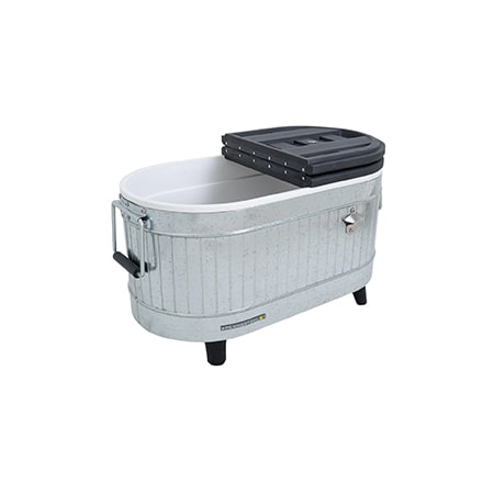 Incluye 2 divisores opcionales para hasta tres compartimentos de bebidas separados Portavasos moldeado para bebidas tapón de drenaje Tapa superior abatible totalmente extraíble Incluye un recogedor de gorras. Construcción de acero galvanizado Dimensiones: 35.7″ L x 20.4″ W x 35.4″ H Peso: 50.7 libras